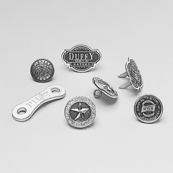 Vi producerar metallknappar med er logo. Finns i olika metaller, matt, blank med eller utan färg.