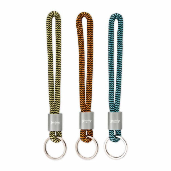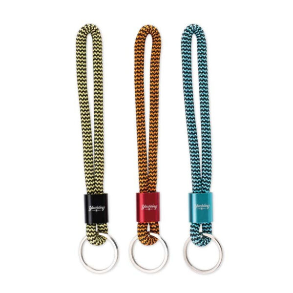 Nyckelband i tvåfärgad nylon, aluminiumspänne med graverad logo.